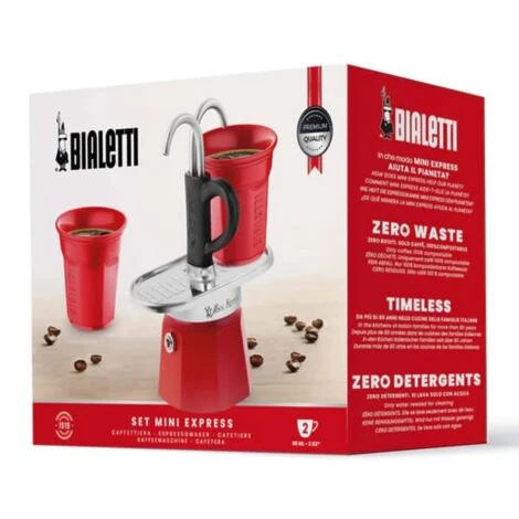 Bialetti Mini Express Double Serve Coffee Maker (2 Cups & 2 Cup Coffee Maker) - Red -Home Chef Shop 87188705 2