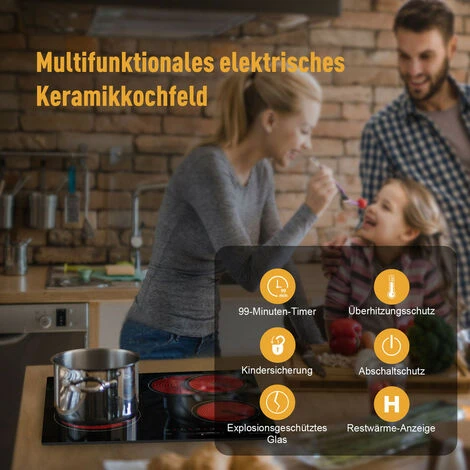 A temperature sensor monitors the temperature inside the ceramic hob. If an excessive temperature is monitored, operation stops.