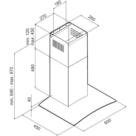 This cooker hood is suitable for either internal re-circulation – air is passed through a charcoal filter, purified and released back into the kitchen, or external extraction – cooking odours and vapours are transferred outside with the help of a ducting kit. Please see below for the appropriate accessories.