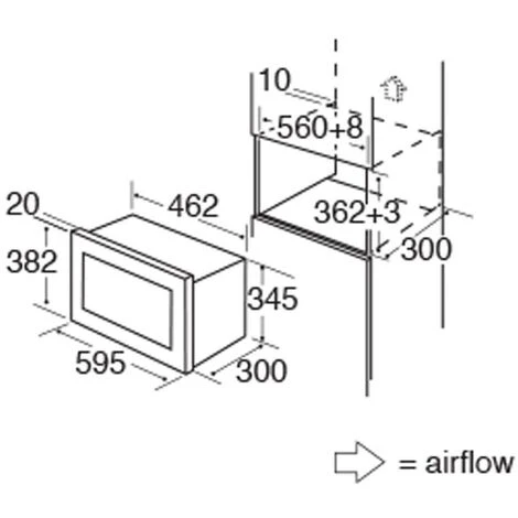 Overall product dimensions (mm): W595 x D320 x H382 (with fascia)