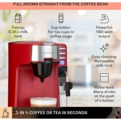 Klarstein Baristomat 2-in-1 Fully Automatic Coffee & Tea Maker Milk Foam 6 Programmes