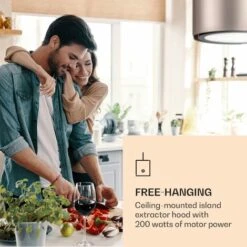 Klarstein Tron Ambience Island Cooker Extractor Hood Ø38cm Recirculation 540m³ / H LED Black