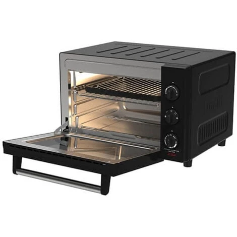 The mini oven has a curved back which allows larger dishes to fit easily inside the large 22 litre capacity.