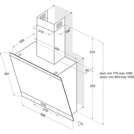 Product dimensions (mm): W598 x D326 x H775-1030