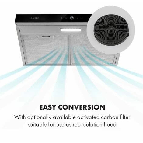 With a height of just 10 cm and a width of 60 cm, the Klarstein Contempo cooker hood is ideal for wall mounting via conventional cooking surfaces and, on the other hand, is also perfectly suited to nestle under a kitchen hanger to save space.