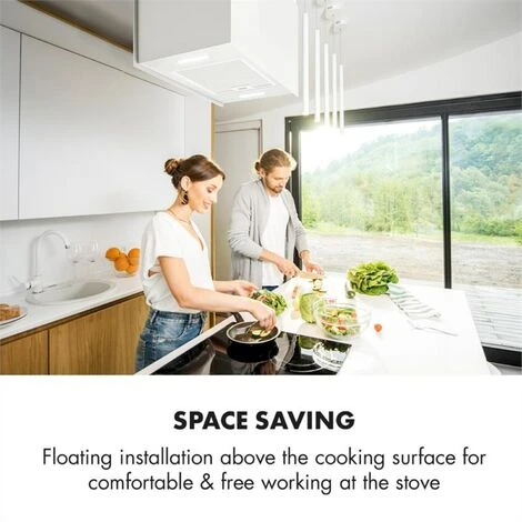 Space saving: floating installation above the cooking surface for comfortable & free working on the stove