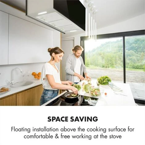 POWERFUL FAN FILTERS ALL FUMES: Across three power levels and a powerful 590m³/h our floating island cooker hoods reduce odours and filter fumes for better air quality. A handy auto-off timer switches the cooker hood off when not in use.