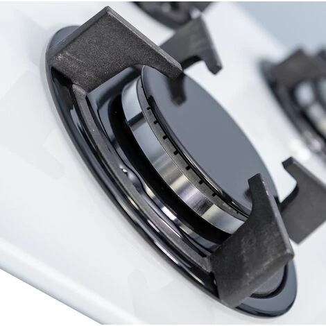 The SIA GHG602WH is a 60cm white, 4 burner glass gas hob with built-in safety features and an elegant design. The removable cast iron supports makes cleaning a breeze and the toughened white safety glass will complement any modern kitchen.