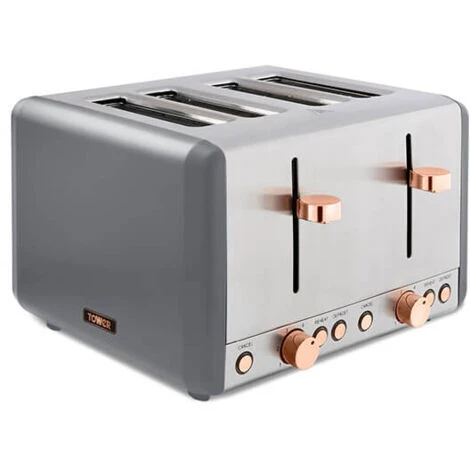 The Tower Cavaletto grey 4 slice stainless steel toaster has a contemporary matt grey finish with elegant rose gold accents adding style to your kitchen and fits in with the coordinating Cavaletto range (sold seperately).
