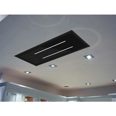 Featuring a central black glass hinged panel (the stainless steel washable grease filters are housed behind it) with changeable colour mood LED lighting and a black outer frame. Attractive Stainless Steel Bluetooth remote control means it�s simple to operate without reaching up, but the hood also comes with easy touch controls for manual operation. With a powerful 600m3/hr motor, this will efficiently and effectively clear your kitchen of cooking smells, grease and odours.