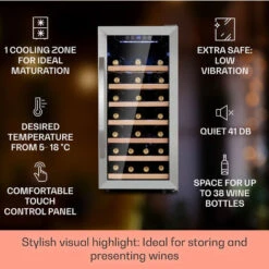 Klarstein Vinamour 26 Uno Wine Refrigerator 26 Bottles 88 Litres Stainless Steel LED